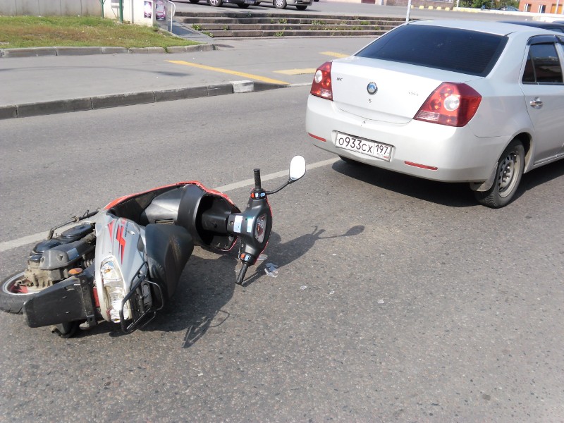 Другое ДТП с участием мопеда произошло во вторник, 7 августа, около 15:30 на Яблоневой аллее рядом с 3-м торговым центром (корпус 317А). 15-летний водитель скутера Router, следуя в направлении улицы Юности, врезался в ехавший впереди автомобиль Geely под управлением 28-летнего жителя Таджикистана, который предпринял экстренное торможение перед пешеходным переходом, чтобы пропустить идущих по нему людей. Юный скутерист получил ушиб правого колена и был доставлен в 3-ю городскую больницу. После осмотра врачи отпустили его домой.