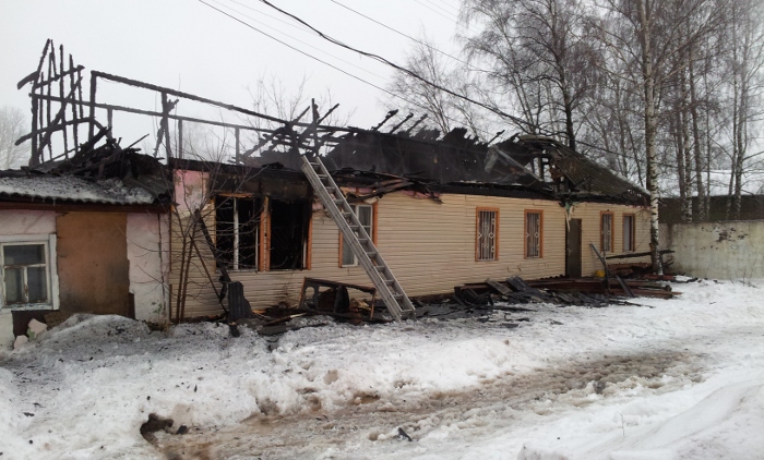Сгоревшее офисное здание на ул.Радио. Фото читателя sarmat