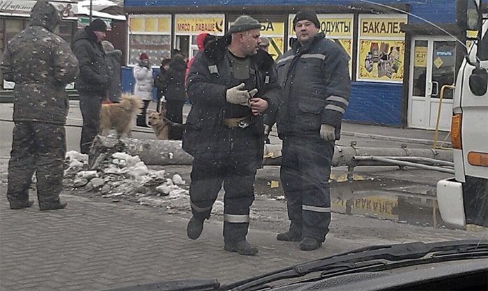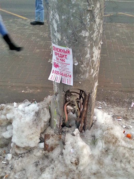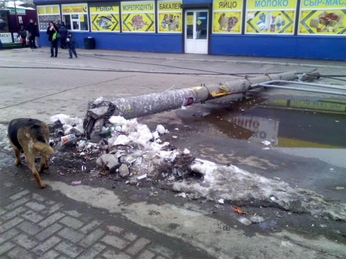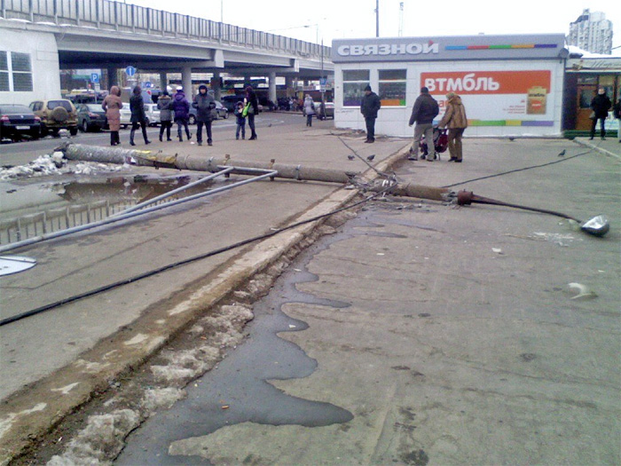 Упавший столб на Крюковской площади. Фото читательницы Инфопортала novajulia