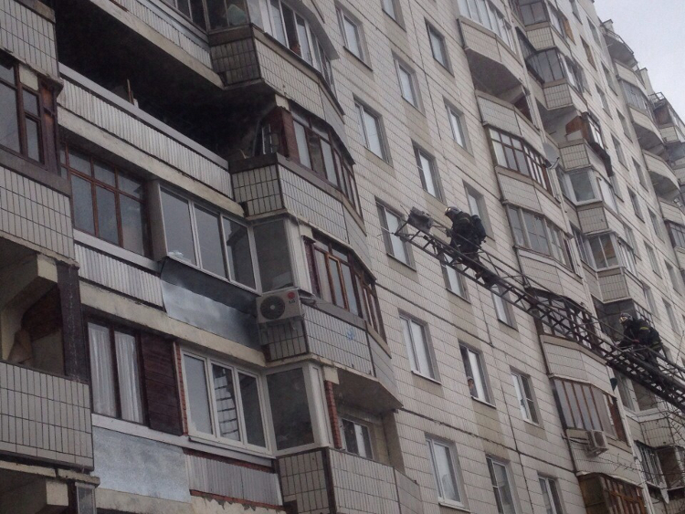 Горящий балкон квартиры в корпусе 1606. Фото Надежды Макаренко из группы Инфопортала «ВКонтакте»