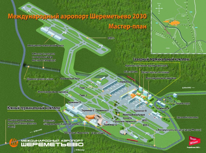 «У нас есть мастер-план развития аэропорта, — сказал Михаил Василенко, генеральный директор ОАО «Международный аэропорт Шереметьево». – Согласно ему, пропускная способность аэропорта в течение пяти лет вырастет вдвое. Будут снесены все старые постройки, все полусгнившие ангары. На их месте мы уже открыли новый терминал «А» — для бизнес-авиации, скоро будет открыт новый грузовой терминал. Единственное старое здание, которое останется здесь в 2012 году — это офис администрации аэропорта, потому что деньги будут потрачены только на обслуживание пассажиров».