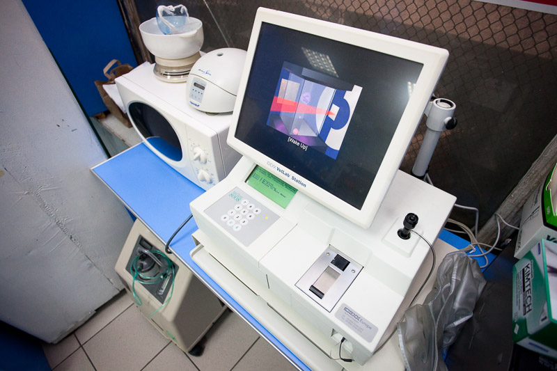 Тут же расположена мини-лаборатория, позволяющая оперативно проводить биохимический анализ крови четверолапых больных сразу по 12 показателям.