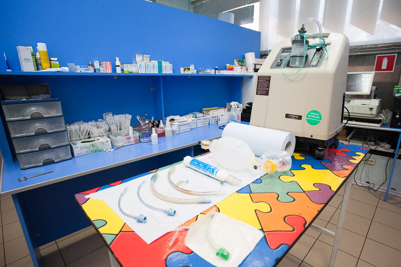 Сложные операции подразумевает наличие реанимационного оборудования. На этом снимке вы видите кислородный конденсатор и интубационные трубки, с помощью которых животным в случае необходимости делают искусственное дыхание. Трубки отличаются по диаметру в зависимости от размера пациента: в критической ситуации равные шансы на спасение будут и крупной собаки, и у мелкого хомяка.