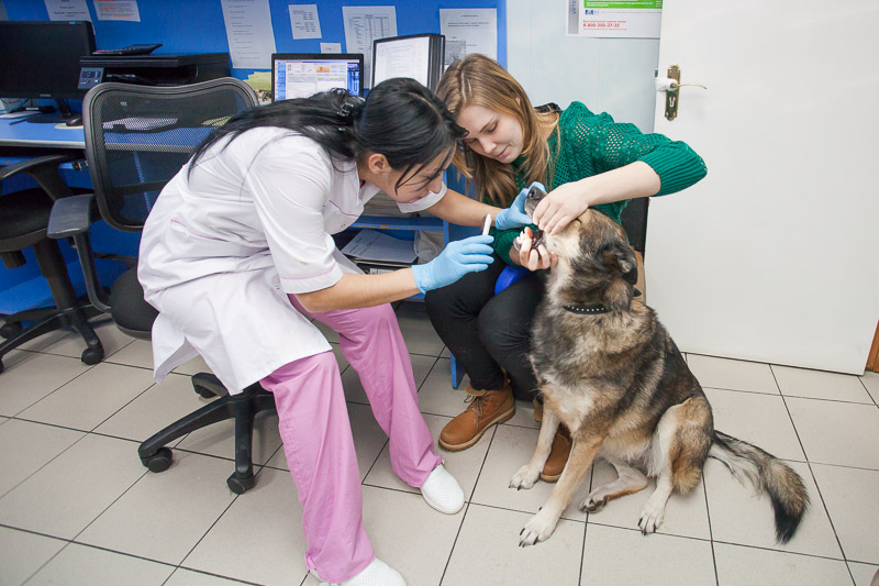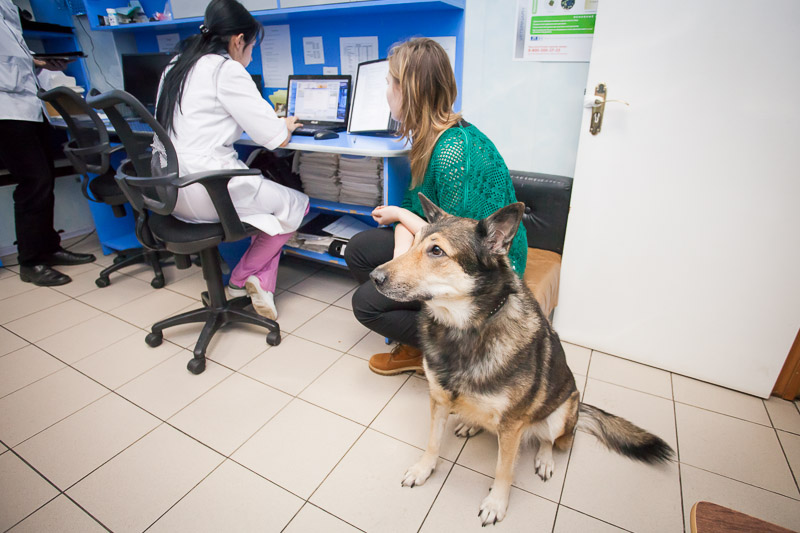 Первом делом ветеринарный врач внесла все данные пациента в электронную карту и задала множество вопросов о возрасте собаки, состоянии здоровья, рационе, привычках, поведении в последние дни. После этого состоялся осмотр дрожащего пациента — сначала на полу, потом на медицинском столе. В итоге Лизе прописали противовоспалительное средство и настоятельно рекомендовали не подбирать на улице «всякую бяку» и прийти через несколько дней на повторный осмотр. Желаем Лизе скорейшего выздоровления и надеемся, что после лечения специалистами клиники POLIVET на ней все заживет как на собаке.