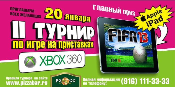 20 января кафе «РОСС» разыграет среди участников игрового турнира FIFA13 ценные призы и подарки. Главный приз — планшет Apple iPad.