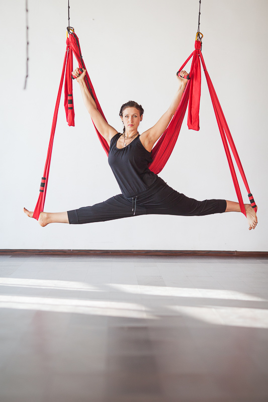 — С одной стороны, выполнять многие упражнения в гамаке гораздо проще, чем на твердой поверхности, — рассказывает тренер по йоге в воздухе Александра Цветкова. — Поэтому в каком-то смысле гамак можно рассматривать как введение в йогу. С другой стороны, надо одновременно еще и держать равновесие, баланс. Это развивает координацию, тренирует вестибулярный аппарат.