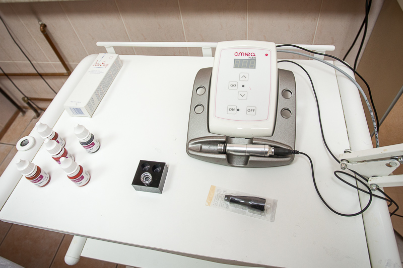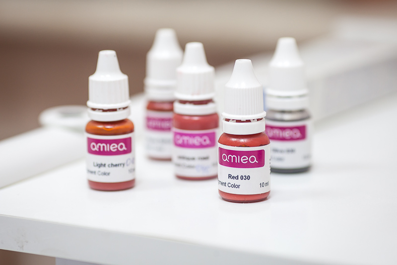 Для проведения татуажа в салоне красоты «Август» используется современная машинка фирмы Amiea. Скорость этого аппарата позволяет значительно повысить эффективность процедуры. Эта же компания поставляет в салон красоты и пигменты — красители для кожи. Их преимущество в том, что они легко адаптируются на коже и не вызывают аллергической реакции. К тому же, Amiea предлагает необычайно широкую палитру пигментов.