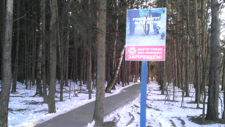 Несмотря на наличие знаков, запрещающих свободный выгул собак, многие собаководы не используют поводки, заставляя окружающих чувствовать себя неуютно.