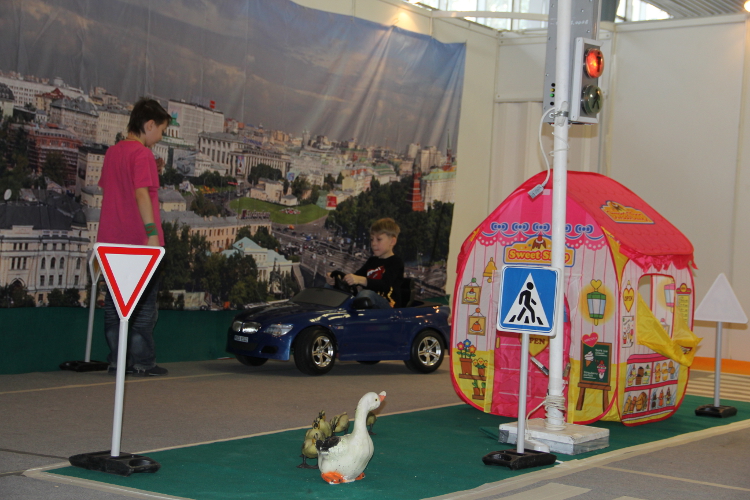 Интерактивная площадка, которая представляла собой макет города, с домами, жителями, дорогами и транспортом. На ней моделировались задачи, которые ставятся перед детьми и их родителями в обыденной жизни: как правильно перейти проезжую часть, что может помешать при переходе проезжей части, как правильно должны себе вести пассажиры. Игра очень нравится детям, а иногда даже и их родителям, которые с удовольствием узнают что-то новое для себя.