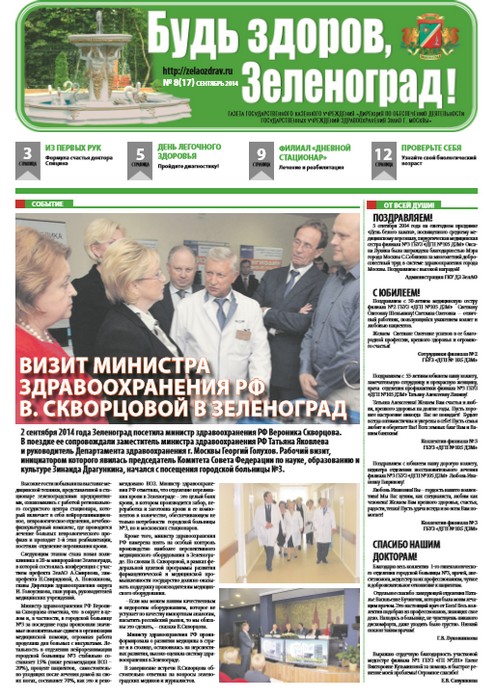 Сентябрьский номер газеты «Будь здоров, Зеленоград!»